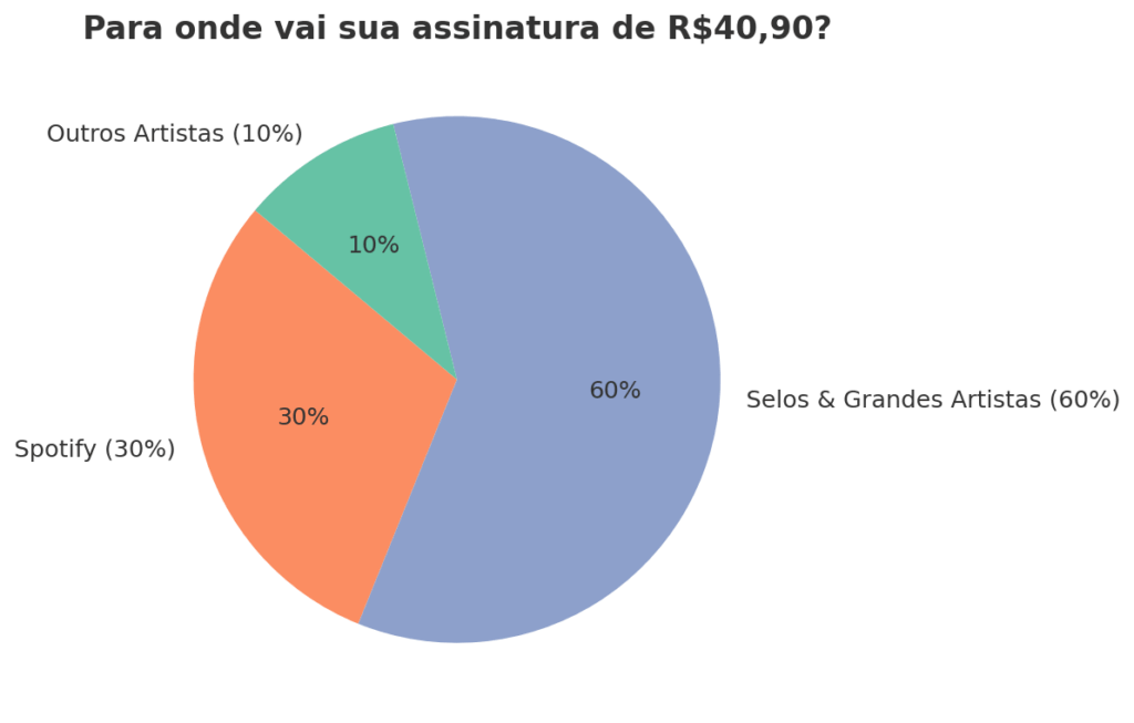 - O restante (~R$ 28,60) vai para o “bolo” de royalties, dividido de acordo com o modelo pro-rata, que favorece artistas gigantes.