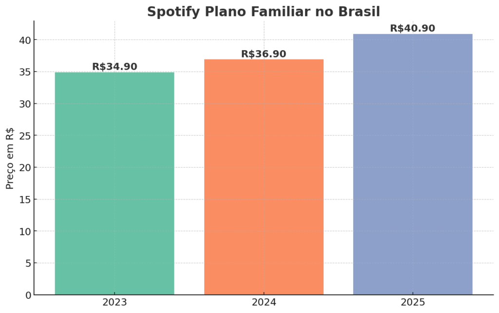 - Plano Familiar no Brasil: R$ 40,90 → o Spotify fica com cerca de R$ 12,30 só para si.